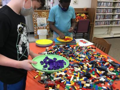 The Library Lego Club participated in a Halloween Challenge! The kids rolled dice to make a "Roll-a-Monster" (each number represented a different body part). After drawing their monster, they used the drawing for inspiration to create it with Legos! They had a blast and named their monsters! Join us every 3rd Thursday of the month for Lego Club! Registration required.