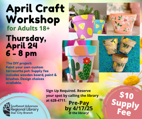 We'll paint a terrracotta flower pot with acrylic paint and you can choose your design - make it a spring, summer, or a unique-to-you design.
