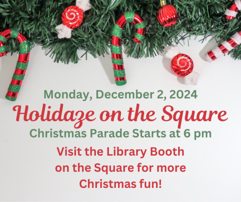 Join the excitement and visit with the Star City Library at the "Holidaze on the Square" celebration on Monday, December 2, starting at 6 pm with the Christmas parade, followed by the official Christmas lighting of the town square. Families are invited to stop by our activity booth on the square for hands-on fun and some library goodies!