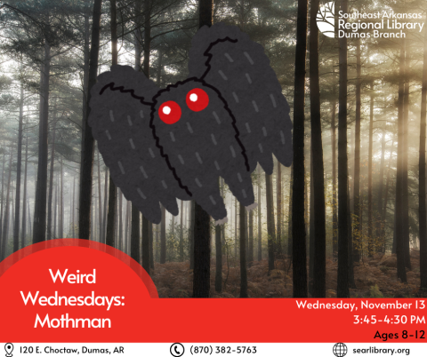 November Program: Mothman, Wednesday, November 13, 3:45-4:30 PM.